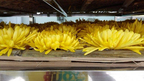 干菊花黃酮素含量極高,富含多種氨基酸、維生素和微量元素。大多用于泡茶飲用,具有“香、甜、潤”三大特點。不僅有味濃香甜、去膩消食、醒腦益神之功能,還有散風熱、明目功效。因此,對于菊花的色、香、形、味要求很高,要求干燥后原色、原味、原樣。為了使菊花能夠四季使用,人們常將菊花烘干成菊花干使其能夠長期保存。